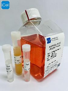 iCell原代平滑肌细胞培养体系是一个为体外生长的人、大鼠、小鼠、兔等哺乳动物的平滑肌细胞设计的理想的完全培养基方案。本体系是一个基于碳酸氢盐的缓冲体系,可以在孵育的5%的CO2的气体环境下维持一个围绕pH7.2的酸碱缓冲体系。本体系是一个无菌的液体混合系统,其中包含必须和非必须氨基酸、维生素、激素、生长因子、微量元素和一些其他的有机和无机化合物以及胎牛血清(10%)。本培养体系是基于固定配方配制的液态培养体系,可以为体外培养的人、大鼠、小鼠、兔等哺乳动物的平滑肌细胞提供一个确定适宜的平衡营养环境,并且可以选择性的促进平滑肌细胞的扩增。向较于低血清培养体系,本体系可以较大程度提高平滑肌的增值速度,但是细胞传代次数则相对较少。